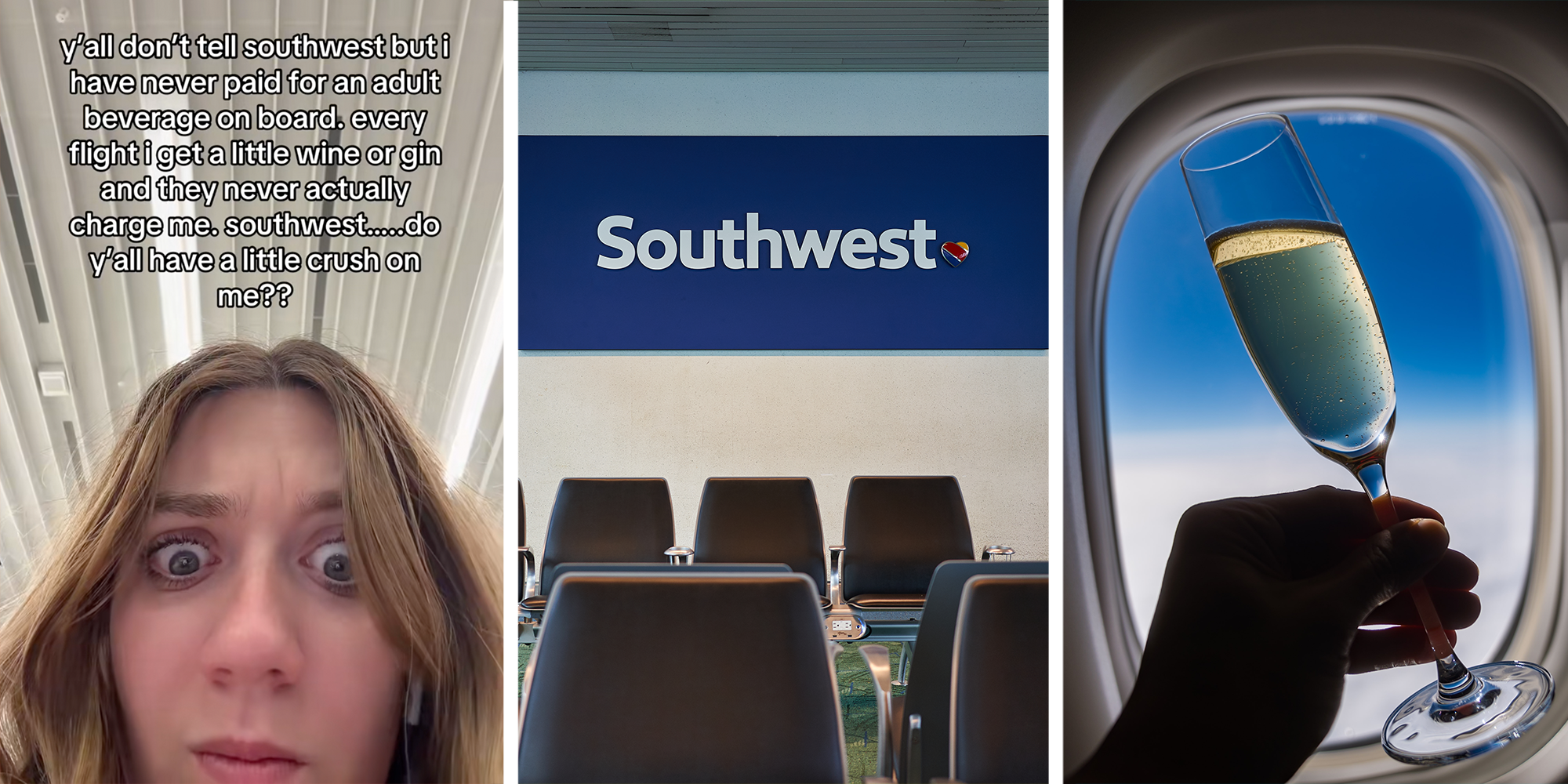 In a video with over 1.1 million views, TikTok user Madison Reed (@_madisonpamela) writes, “Y'all don't tell southwest but i have never paid for an adult beverage on board.”