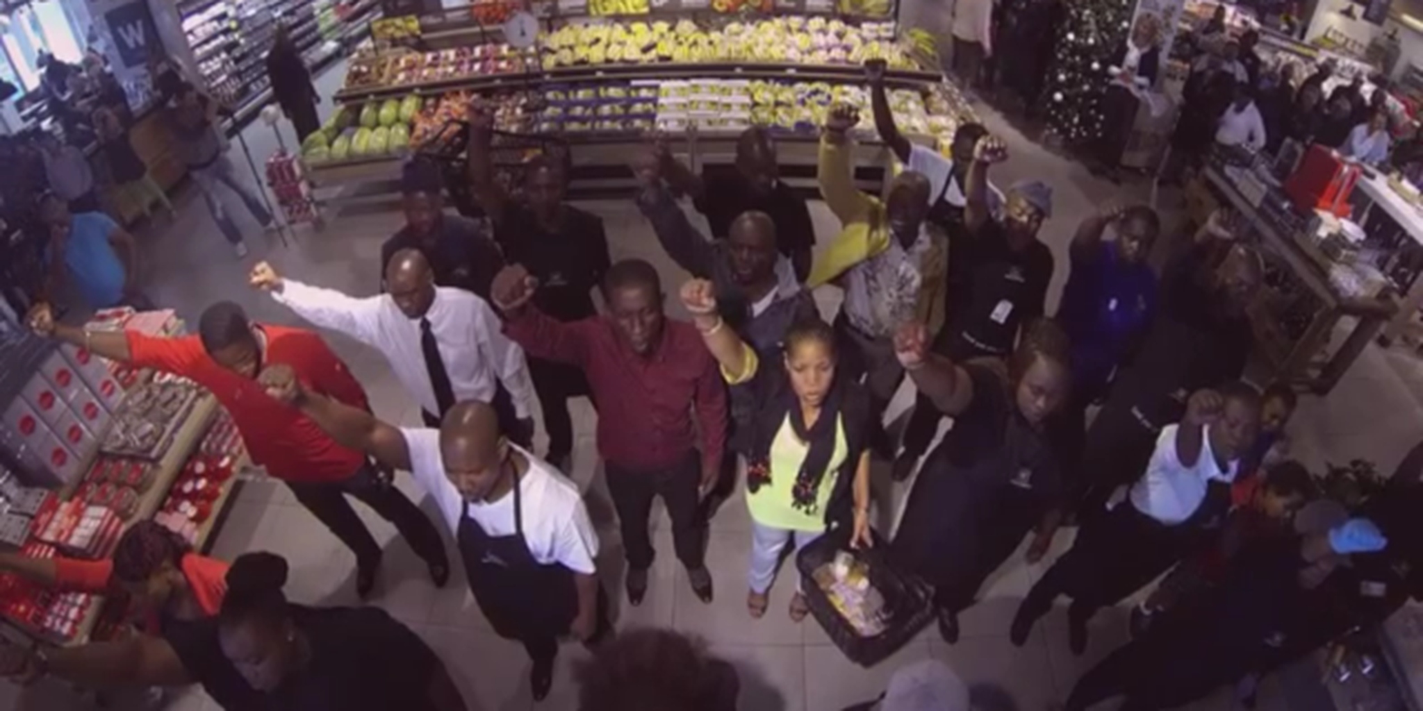 Instead, the choir chose to sing Johnny Clegg’s “Asimbonanga,” which became the rallying crying for Mandela’s freedom while imprisoned in the ‘80s. Members of the choir took a flash mob approach, and dressed as employees or patrons of the store. And as the first voice rings out, a normal day of grocery shopping suddenly turns into a powerful tribute.