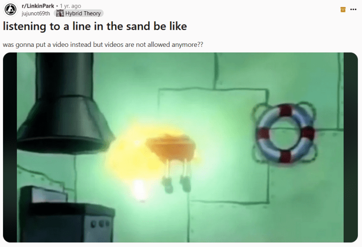 People may also wield it as an image, especially after it became recognizable as a meme without the song, and later often edited the screenshot into SpongeBob floating with headphones, sometimes attached to an iPod or MP3 player. On TikTok, users picked up the trend by creating videos of themselves appearing to float.