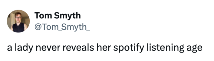raise your hand if you felt personally victimized by your spotify wrapped "listening age" pic.twitter.com/XUlfG8WeLK