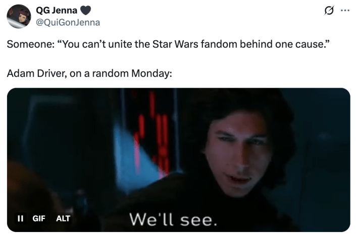 “I always was interested in doing another Star Wars,” Driver shared. “I had been talking about doing another one since 2021. Kathleen [Kennedy] had reached out. I always said: With a great director and a great story, I’d be there in a second. I loved that character and loved playing him.”