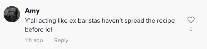 Another commenter also pointed out that many other employees similarly shared the recipe. "Y'all acting like ex-baristas haven't spread the recipe before lol," they wrote.