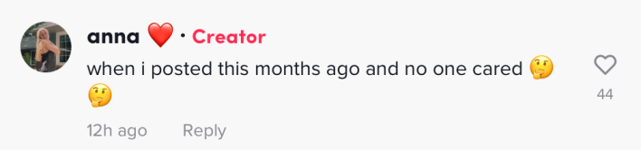 The video is a repost, according to Anna (@annalovescoffee). She originally posted the video in August 2021, but the video only received 38,000 views on the platform at the time.