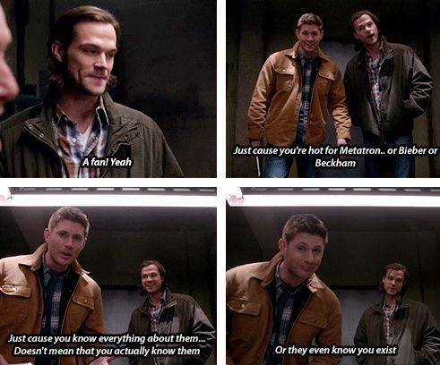 SPN is a case study in interacting with fans through deliberately meta episodes that involve the characters coming into contact with fans of theirs. The track record of these episodes is beautifully bizarre, including one Season 5 portrayal of a fan convention that was almost entirely composed of male attendees—that is, the polar opposite of what an actual SPN convention looks like.