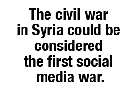 If the Vietnam War was the first television war and the Gulf War was the first 24/7 cable news war, the civil war in Syria could be considered the first social media war. Across YouTube, Facebook, Instagram, Twitter, Flickr, Blogspot, Wordpress, forums and chat rooms, hundreds of factions in the dispute are waging propaganda offensives.