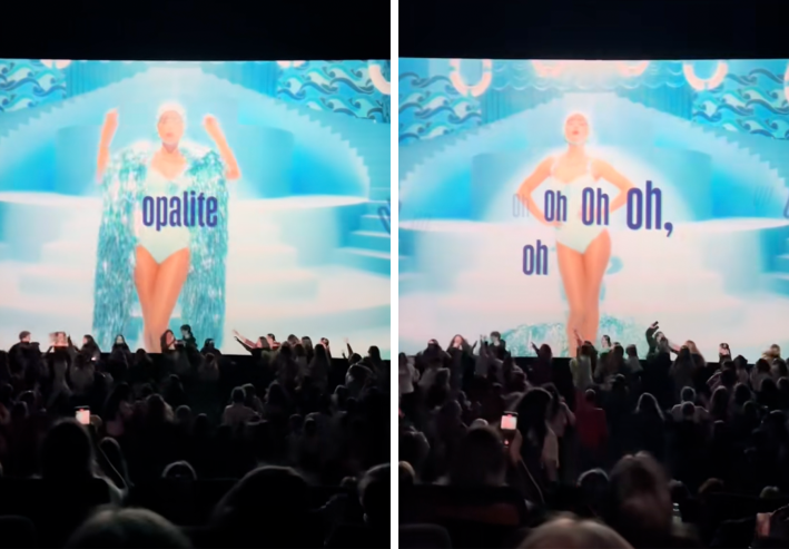 However, some fans say they had a great time at the movie theater listening party. In one TikTok, a large group of fans jump around the theater near the screen and sing along to "Opalite."