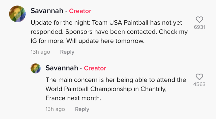 "Update for the night: Team USA Paintball has not yet responded," @rx0rcist wrote yesterday. "Sponsors have been contacted. Check my IG for more. Will update here tomorrow."