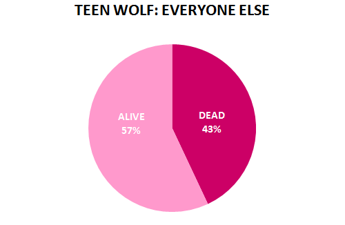 The first to go were two of the teenage werewolves, Erica and Boyd. The girl and the black guy, to put it bluntly. At first this doesn’t seem like such a big deal, because a show like Teen Wolf is likely to have a pretty high mortality rate. But the demise of Erica and Boyd meant that of the three teen wolves introduced in season 2, the sole survivor was the white guy, Isaac. In fact, looking at the current remaining cast members, the best way to survive a perilous Teen Wolf lifestyle isn’t to have great fighting skills or even to be a popular character—you just have to be white and male.