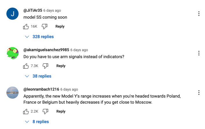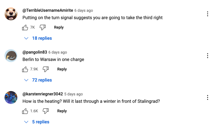 The ten-minute review has racked up over 2.5 million views in just one week so far. But the real draw here has been the comment section, which has become completely overrun with jokes and puns mocking Tesla by tying the company to fascism.