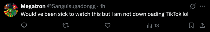 "Would've been sick to watch this but I am not downloading TikTok lol," @ commented in response to a post on X that linked the viral TikTok of the band's first house party appearance in April.