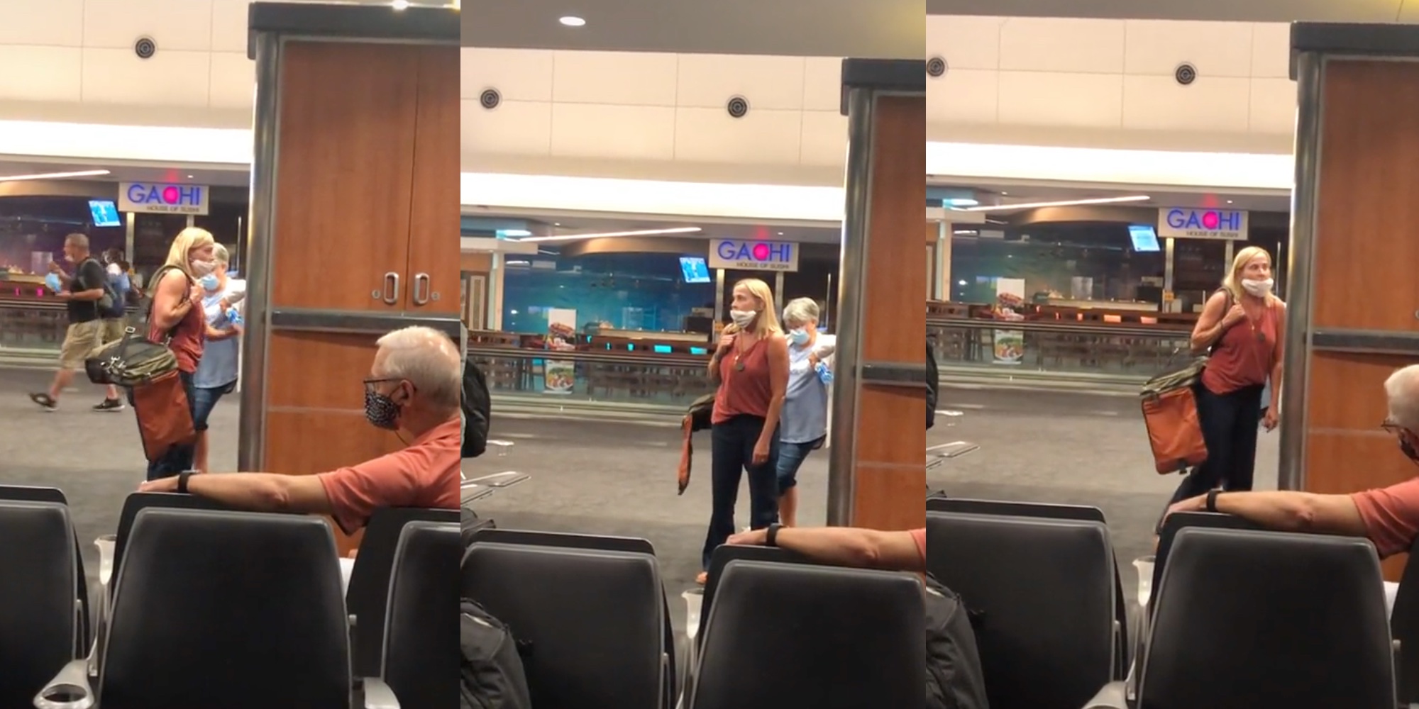 "Where is the law? Where is the law for this," she asks someone who appears to be an employee after she is asked to mask up.