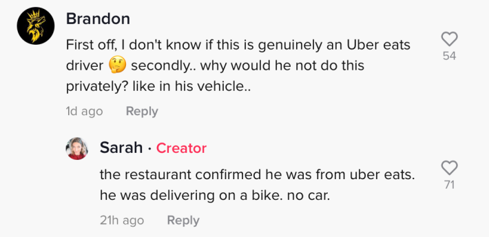 Unfortunately, in the case of this Uber Eats driver, that's not what happened.
