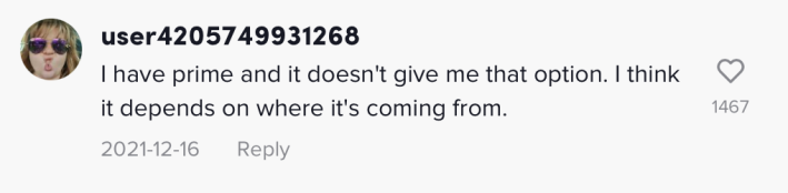 "I have prime and it doesn't give me that option," one commenter wrote. "I think it depends on where it's coming from."