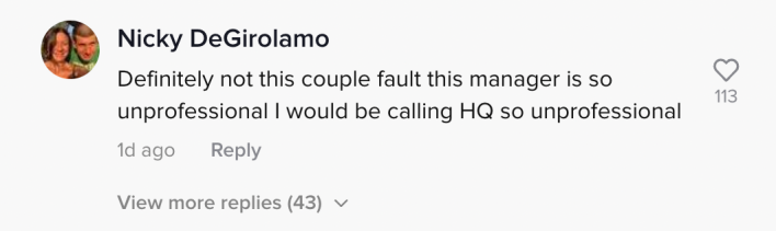 Still, there were a few folks defending the couple, calling the manager "unprofessional"