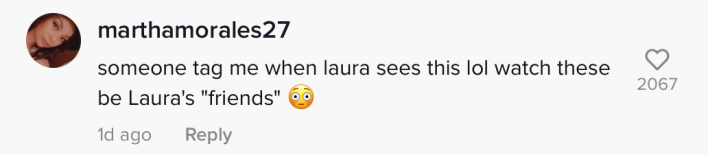 "Someone tag me when Laura sees this lol watch these be Laura's 'friends,'" one commenter wrote.