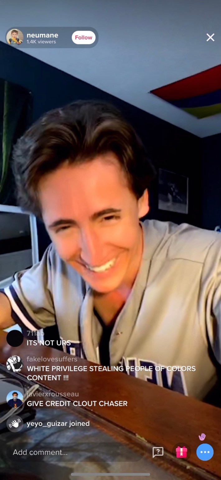 Popular comedy TikToker Kane Trujillo, known as @neumane on the app, has been accused of stealing content from smaller creators.