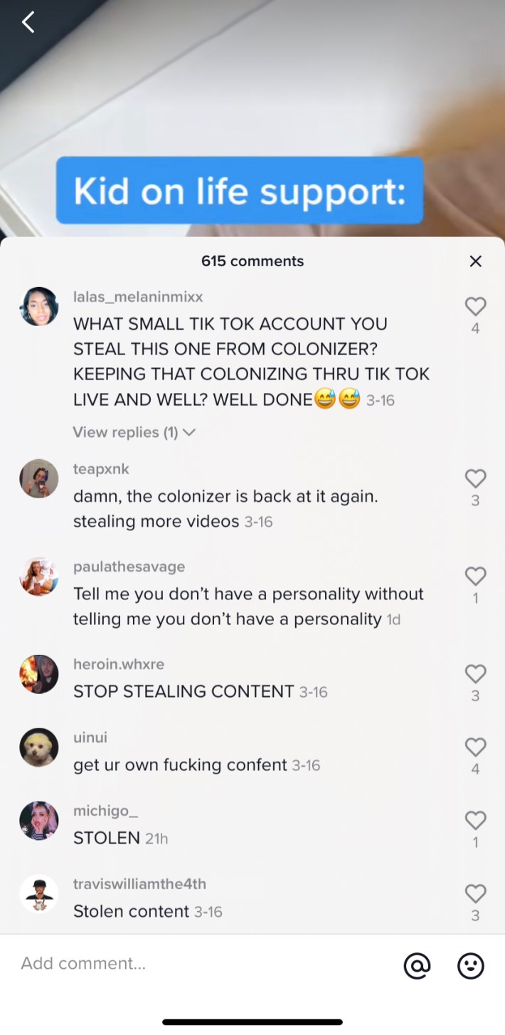 “This is something I’ve come to accept because sadly TikTok is an app that will push stolen content and Suppress originality!” Natchez Ballinger, known as @nuhchez, told the Daily Dot in an email. “Creators have stolen from me since I’ve joined the app, I take it as flattery in a way.”