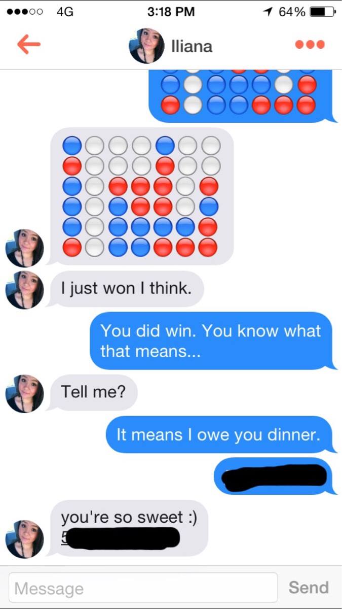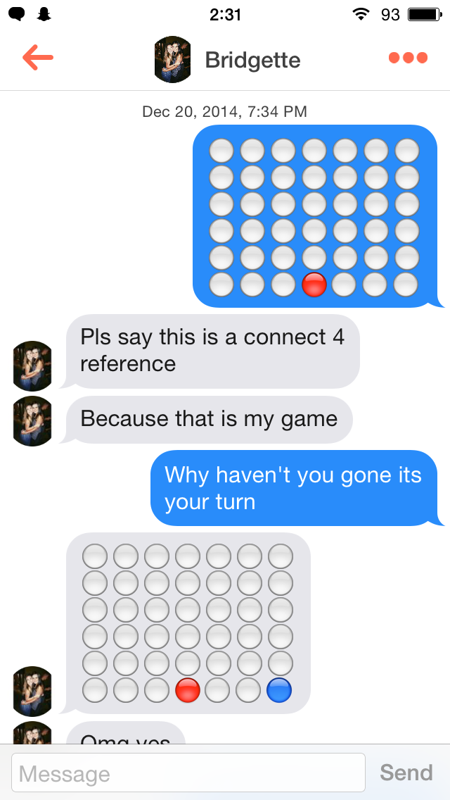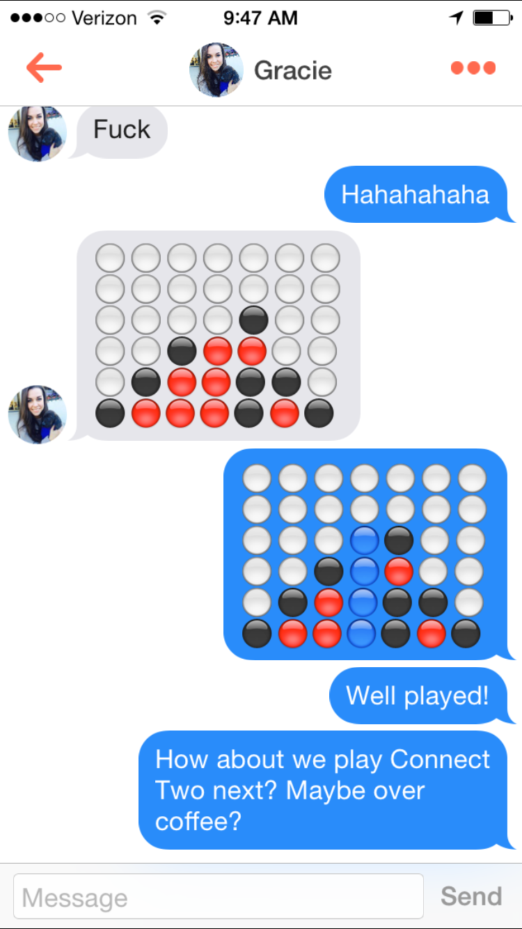 On Reddit's r/Tinder forum, Connect Four pops up a lot. The game seems to work—it's a unique way to break the ice, after all—although most dudes don't post their failures.