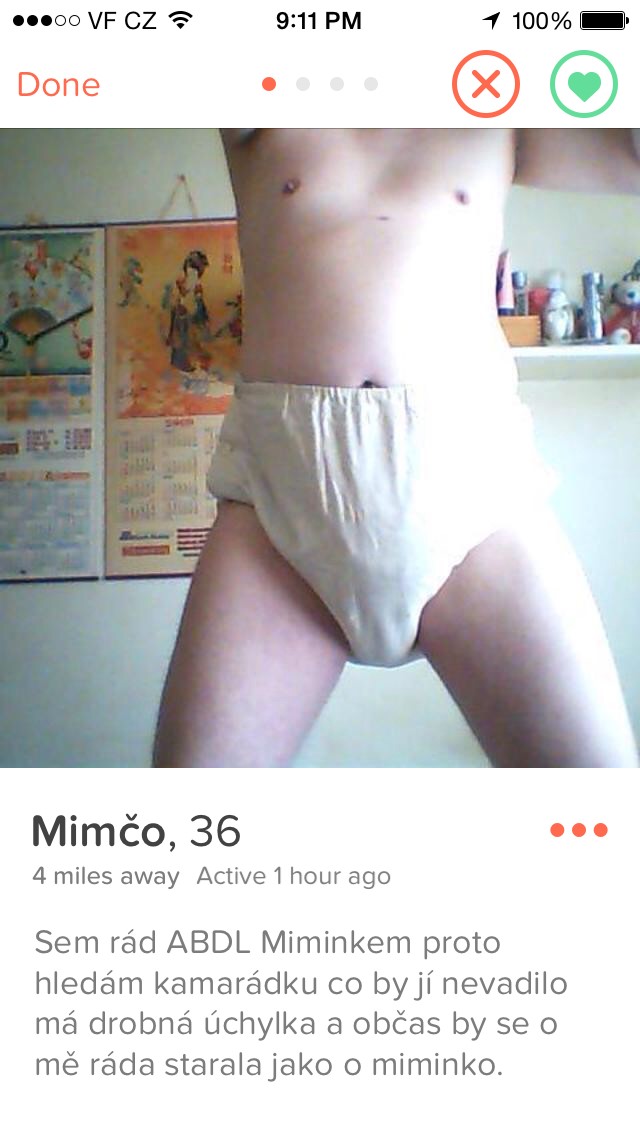 More commonly referred to as “that diaper guy,” Mim?o is not afraid to show the world what he’s into. Seriously. His only photos are either of him in diapers or standalone product shots of those water diapers with the weird patterns and unfortunate ruffles and rickrack surrounding their elastic. Needless to say, it was easy to swipe left and keep going, though the images of Mim?o have sadly not been forgotten.