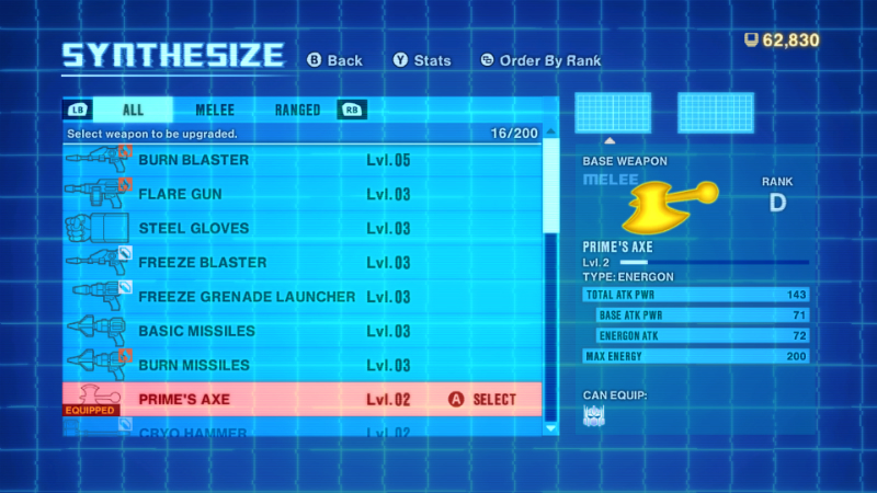 I did not expect to find crafting systems in Devastation, based on the simplicity of the game's premise. But when the Autobots return to their spaceship, the Ark, you can synthesize all the melee and ranged weapons you pick up as loot and in arms caches spread throughout the city into more powerful versions of themselves by fusing the weapons together.