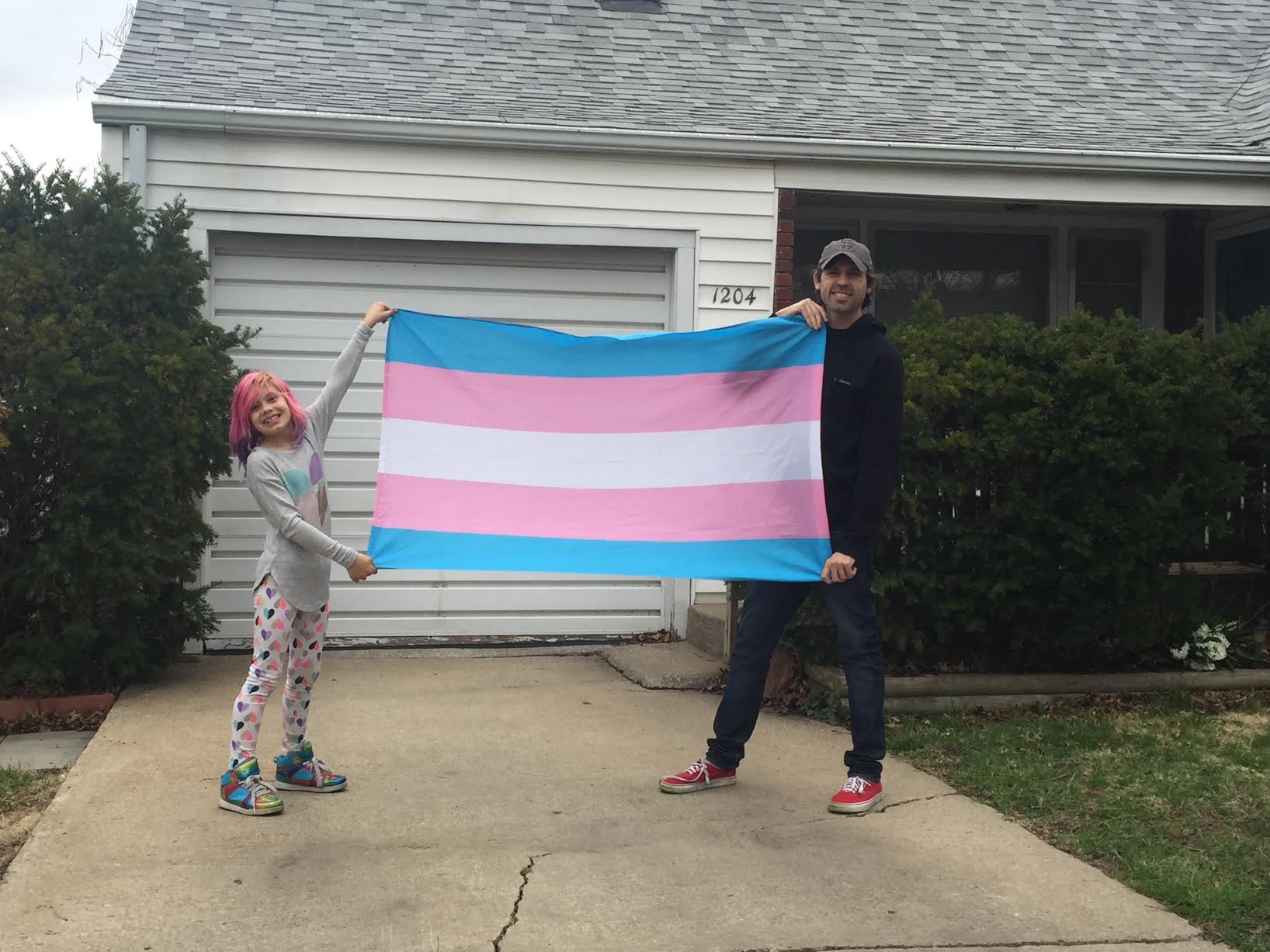 But once a year, Equality House's rainbows are painted over with the pink, white, and blue colors of the transgender flag, with the goal of representing a wider spectrum of the LGBT community. That's when 8-year-old Avery Jackson first visited with her mom Debi.