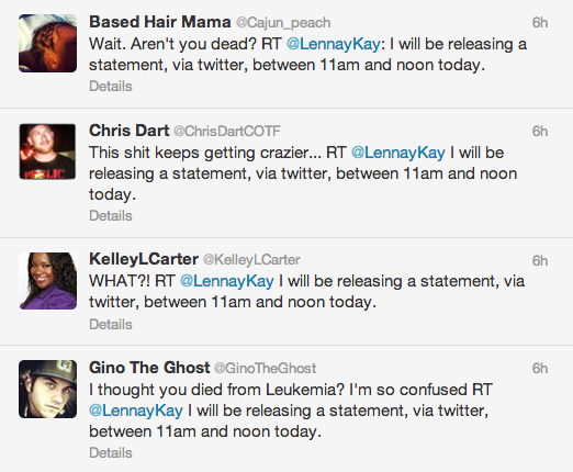 On Thursday, @LennayKay upped the game, promising an official statement. A "lot of truths and myths need to be addressed here," the account wrote.