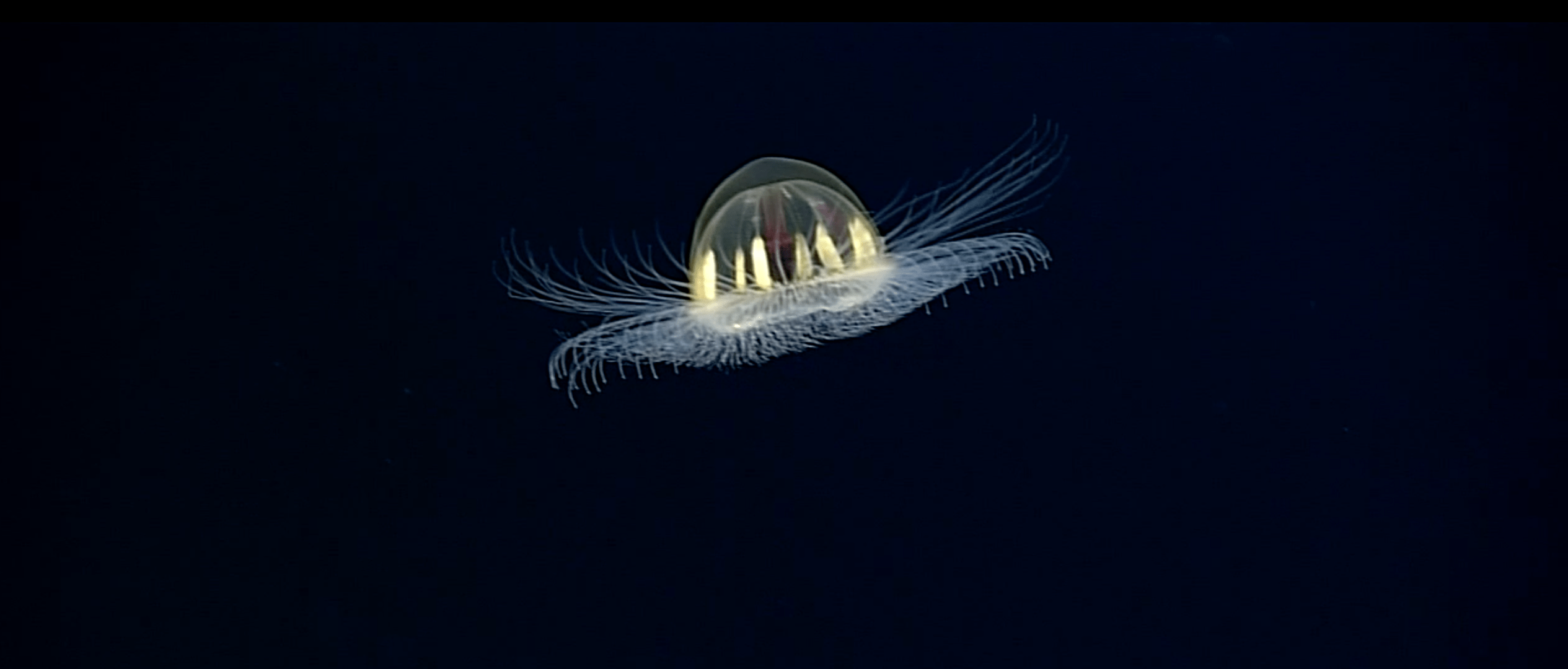 A team of marine biologists from the U.S. National Oceanic and Atmospheric Administration captured footage of a jellyfish called the rhopalonematid trachymedusa, which looks like a flying saucer.