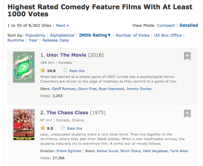 One of IMDb's best-rated comedies is a fake movie about four men playing a tortuous game of Uno.