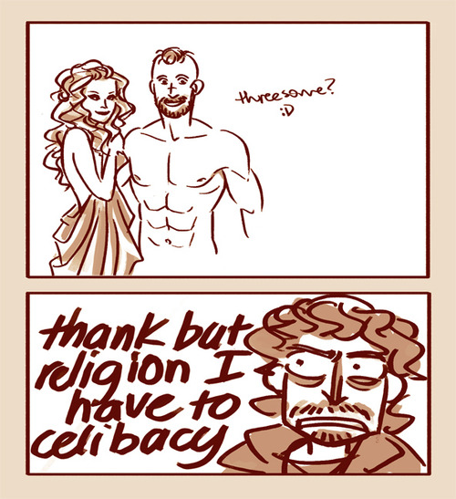 Within days of Athelstan’s arrival at casa Lothbrok, Ragnar and Lagertha invite him into bed with them. He actually turns them down (because Jesus would disapprove), but after a few episodes they all more or less seem like they’re in a threesome marriage anyway.