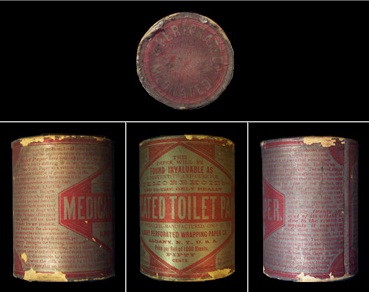 Start with the Vintage Collection, which includes photographs of various rolls of bathroom tissue from throughout the ages. The oldest example, dating back to the 1880s, is Albany Medicated Toilet Paper.