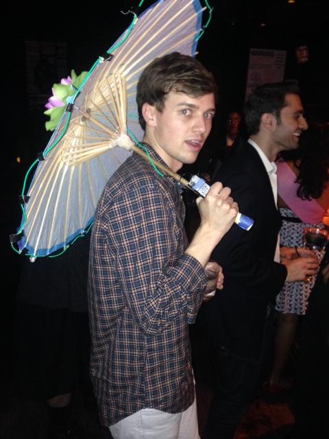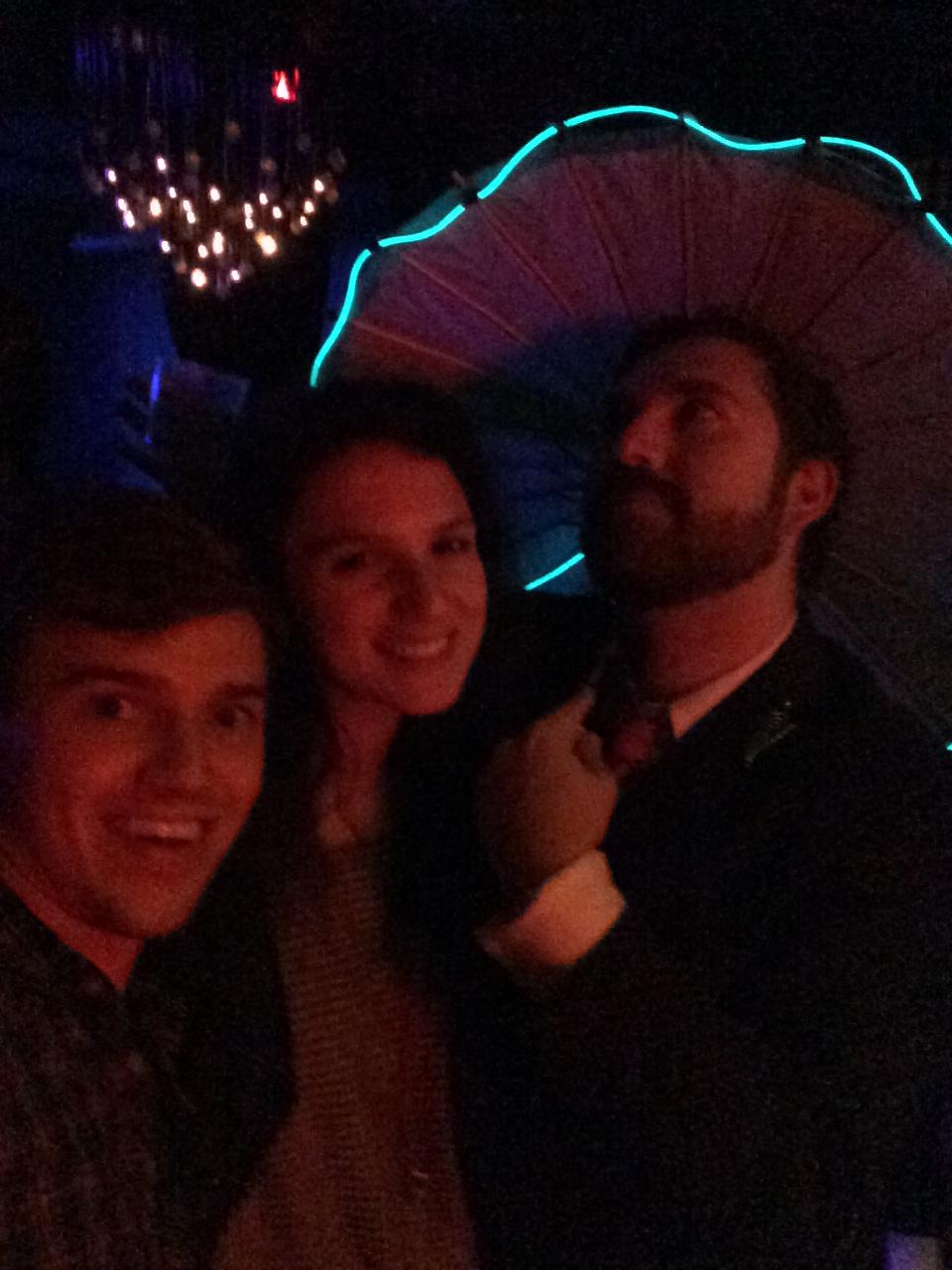 The night is winding down. We meet a large bearded man wearing a kilt and holding an umbrella, which upon closer inspection is an Asian parasol with L.E.D. lights wrapped around it. Obviously, we take a few selfies with the man and his parasol as he describes the different circumstances with which he wears underwear with his kilt. It’s by far the most interesting conversation of the night.