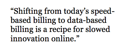 No matter what the justification actually is, the outcome is the same. Shifting from today’s speed-based billing to data-based billing is a recipe for slowed innovation online.