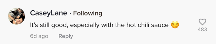 "It's still good, especially with the hot chili sauce," one commenter wrote.