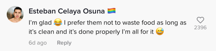 "I prefer them not to waste food as long as it's clean and it's done properly I'm all for it," @estebancelayaosuna wrote.