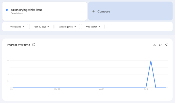 I may be in the minority, but I did not tear up at this Saxon scene. What I saw here was a man finally realizing that he desires LOVE but mourning the fact that he would most likely never get it… #thewhitelotus #WhiteLotus pic.twitter.com/HrewyFFgwm