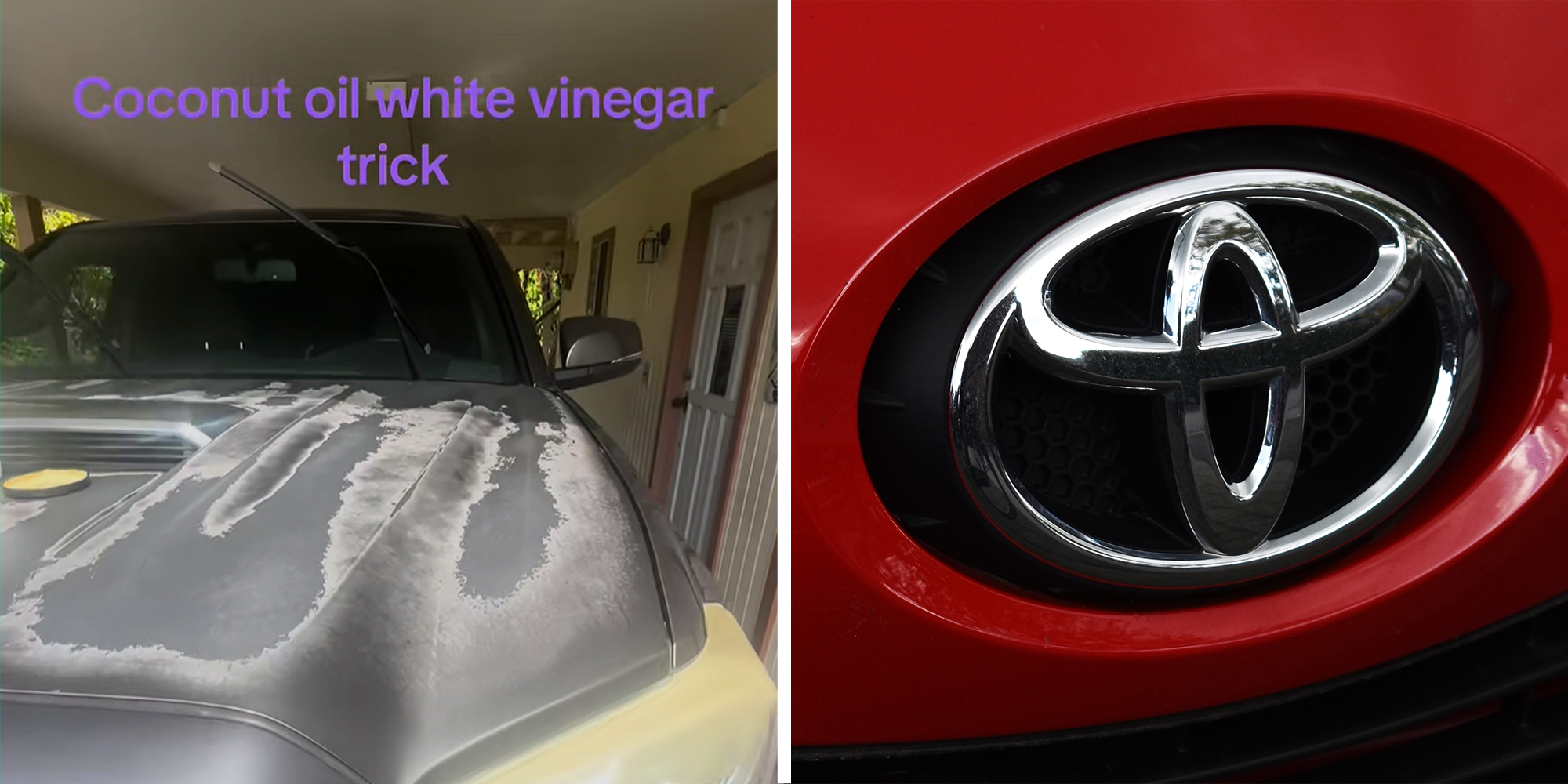 A man shares how he gets rid of faded sun damage on his truck using coconut oil and white vinegar. Some viewers aren't convinced.