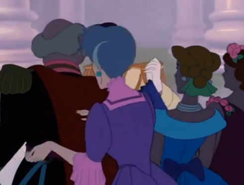 Adorned with a puffy blue gown and shrouded in mystery, Cinderella commands the room with her own presence. But she also draws hate and jealously from all the girls at the ball when the prince asks her to dance.