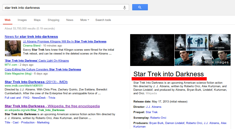 For months, Wikipedians argued over a single bit of style in the title of the new Star Trek movie. The film is called Star Trek Into Darkness. For reasons that remain impenetrable to most neutral observers, Wikipedians changed the name to Star Trek into Darkness (usually written as Star Trek Into Darkness). They replaced a capital "I" with a lowercase "i."