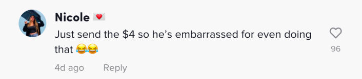 "Just send the $4 so he’s embarrassed for even doing that," someone else suggested.