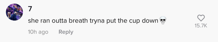 "She ran outta breath trying to put the cup down," one commenter wrote.