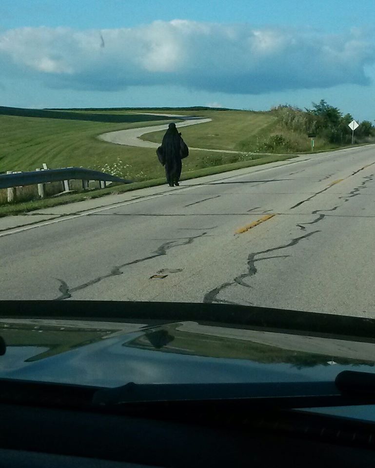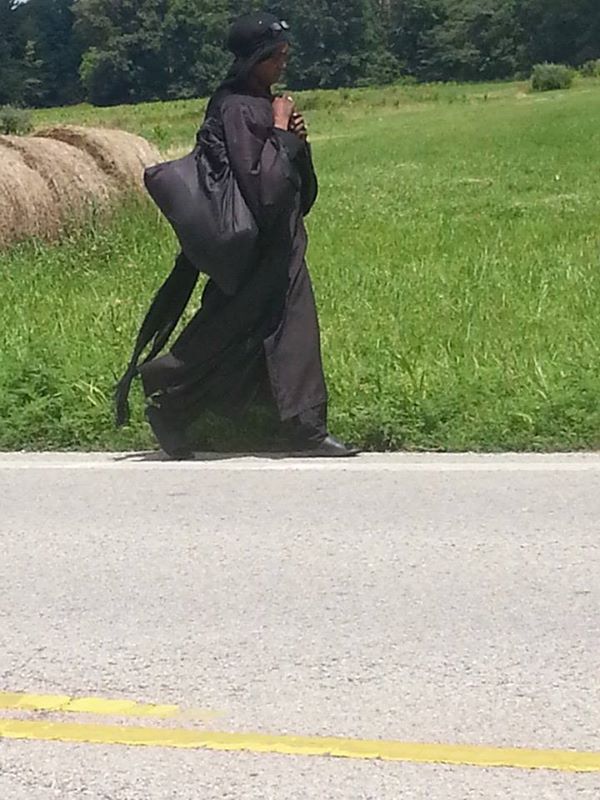 But whatever the reason for her strange journey, and however many gawkers there are along the way, it seems the woman in black has had plenty of help as she has walked through the rural Southern U.S. Many people have referenced Hebrews 13:2 regarding their treatment of the woman—"Do not neglect to show hospitality to strangers, for thereby some have entertained angels unawares."