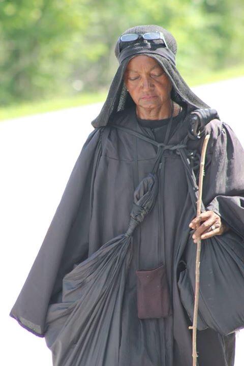 Shrouded heavily in all-black clothing, a woman alleged to be an Army veteran and a bereaved mother of two has been steadily making her way north through the Appalachian U.S., drawing interest from locals and Internet onlookers all over the country.