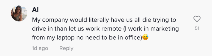 A woman on TikTok posted footage of herself trying to leave for work amid a severe snowstorm that had her car trapped in snow. Viewers had a lot to say about her attempt, sparking a debate in the comments on her video.