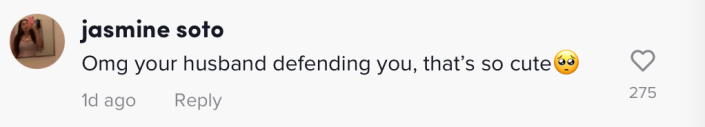 "Omg your husband defending you, that's so cute," one commenter wrote.