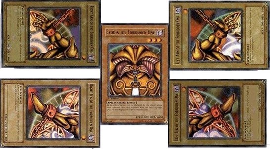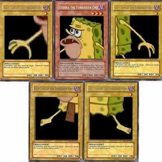 Here's another Exodia meme. You can't see his little D this time, but he does appear to be chained up spread-eagle. Who doesn't love sexual bondage jokes about children's entertainment franchises?