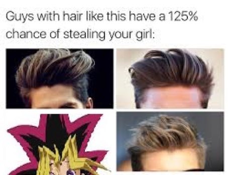 Yu-Gi-Oh! also goes well with other memes. It helps that the main character, Yugi, has great hair: