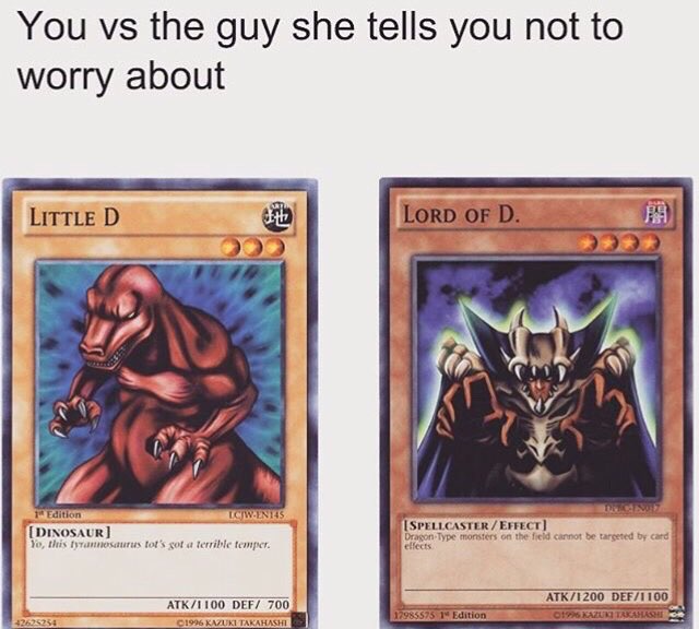This one, a classic dick joke executed with cards from the Yu-Gi-Oh! collectible card game, was near the top of Reddit's r/me_irl Thursday. You don't have to know a damn thing about the game or the characters to laugh at "Little D."