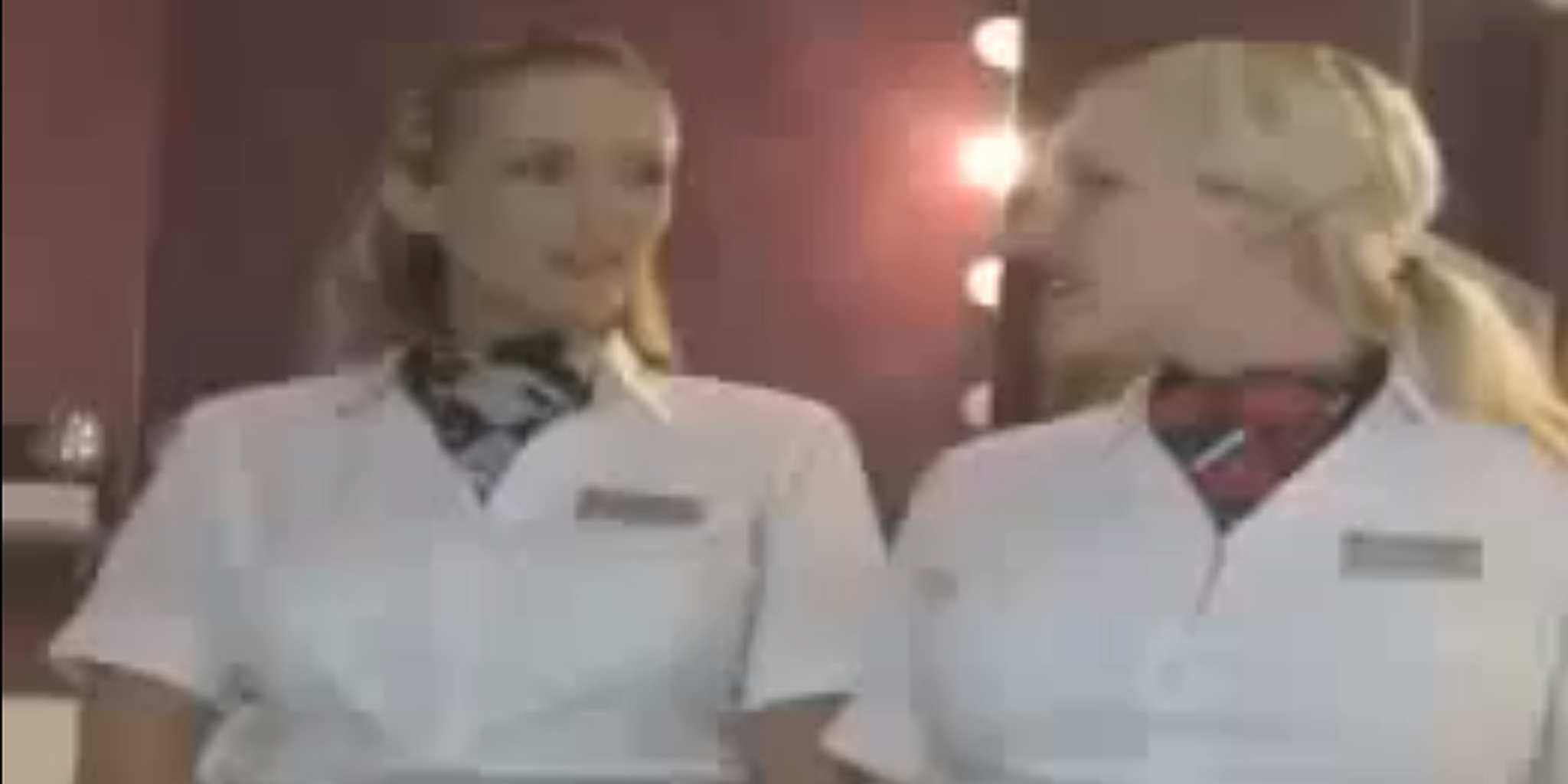 The two stewardesses who appeared in a YouTube video last year, undressing from their uniforms and writhing in a bathtub. The clip is tame but certainly provocative and NSFW.