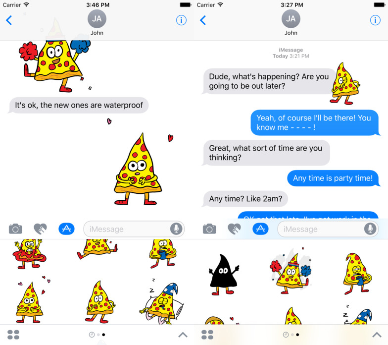 Why is this cat under a paper bag? According to the sticker pack’s page on the App Store, Paper Bag Cat is a “former pageant contestant who grew tired of all the attention and decided to leave the life of glitz and glamour behind.” That, and it enjoys being grumpy and flying on pizza, among other things. Pretty much like most of the people you know, amirite?
