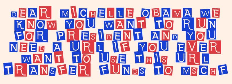 “Dear Michelle Obama,” one such site for the former first lady says. “We know you want to run for president and you need a URL. If you ever want to use this URL transfer funds to MSCHF.”